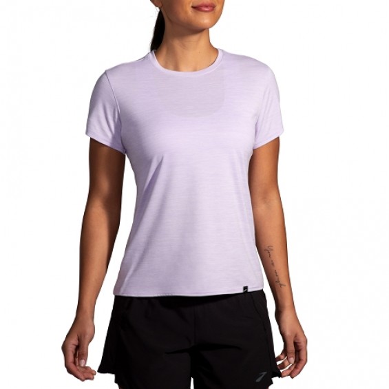 Luxe 短女袖上衣_淺紫花灰